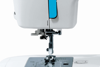 Мощный мотор позволяет шить при скорости 750 стежков/мин и работать с тяжелыми тканями.